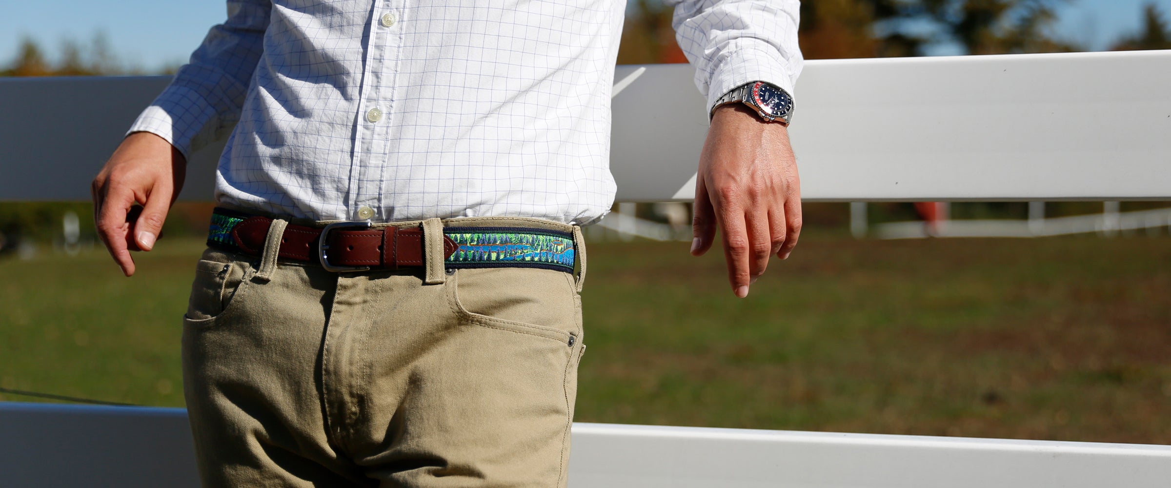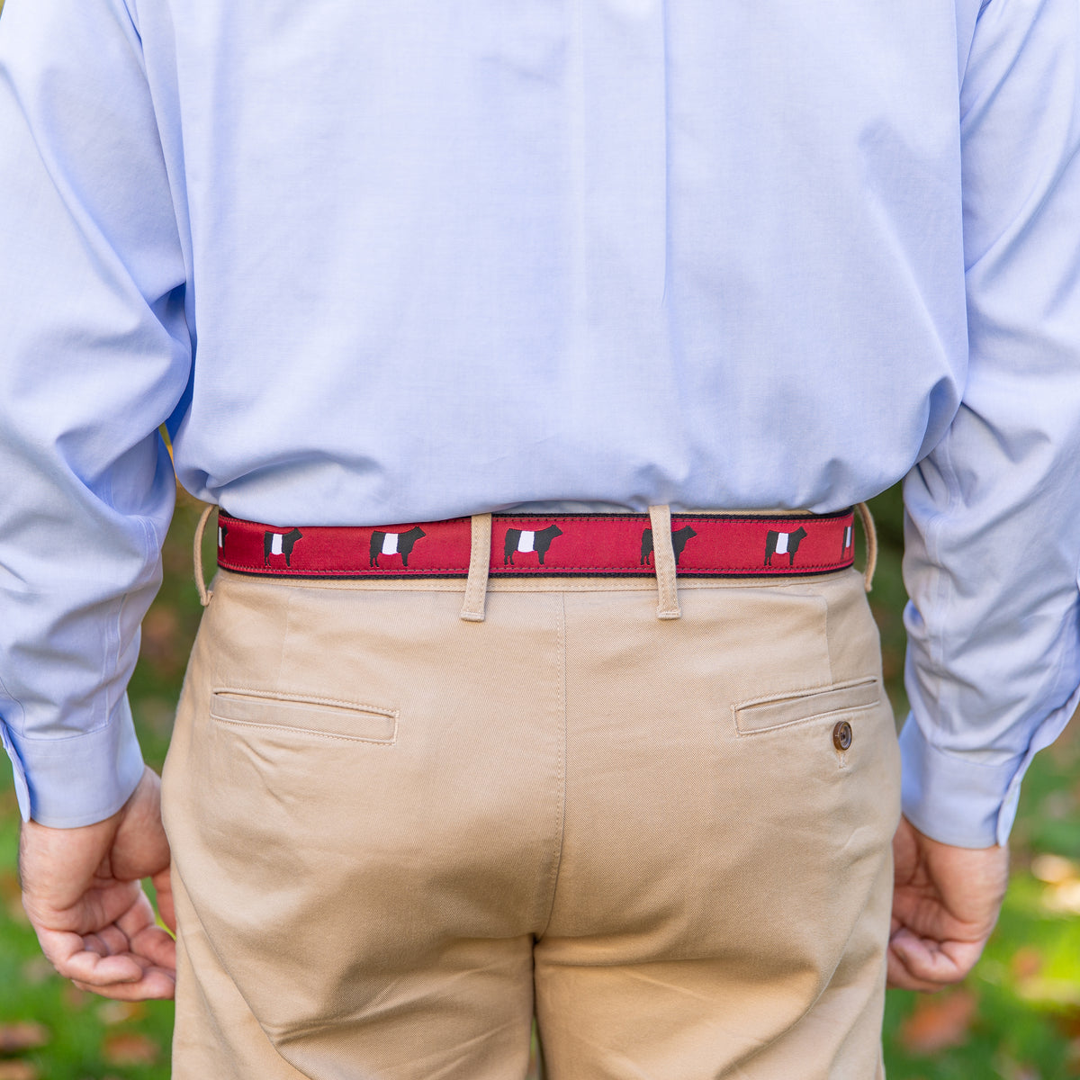 The Belted Cow Ribbon Club belts, for those who take their waist-management seriously, feature sturdy 1 3/8" New England woven cotton webbing, premium brass buckles, and Italian leather tabs. This handmade Maine belt combines preppy webbing style with leather craftsmanship, creating the perfect marriage of form and function. Each belt arrives in a Belted Cow Company drawstring gift bag, ready to take its place in your carefully curated collection of distinguished waist-wear.
