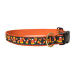 Get into the Halloween spirit with this spooktacular Candy Corn Dog Collar. The classic candy corn pattern dances across the collar like tiny sugary ghosts, making it a deliciously fun accessory for autumn outings and trick-or-treating. This collar is both hauntingly stylish and sturdy as a skeleton, making it the perfect choice for any pup who's ready to pawty this fall.