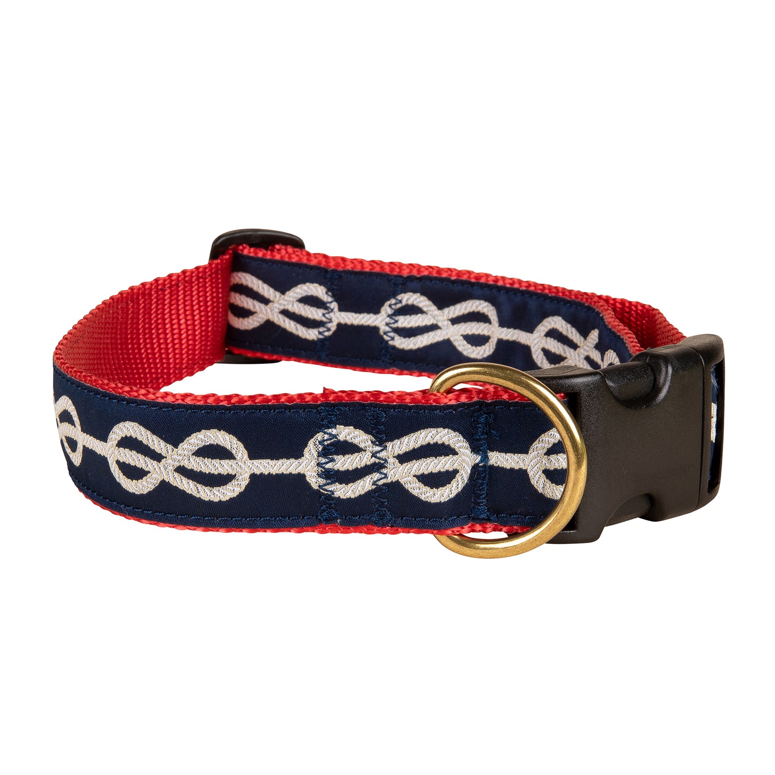 Dress your pup in pure pizzazz with the Classic Knot Dog Collar, featuring a nautical knot pattern that'll have your furry first mate ready for adventure on land or sea. With snazzy figure-eight knots that'll make other dogs say "ahoy there, good looking," this collar brings seafaring swagger to every tail-wagging expedition.