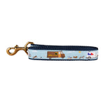 Lead the way to adventure with this delightful leash that celebrates every pup's favorite neighborhood pastime - the great delivery van chase! The sky-blue ribbon showcases spirited dogs in hot pursuit of sunshine yellow and postal white vans, perfectly capturing that irresistible canine instinct to escort (or race) every package that comes their way. This charming lead turns your daily walks into a stylish parade of delivery day excitement.