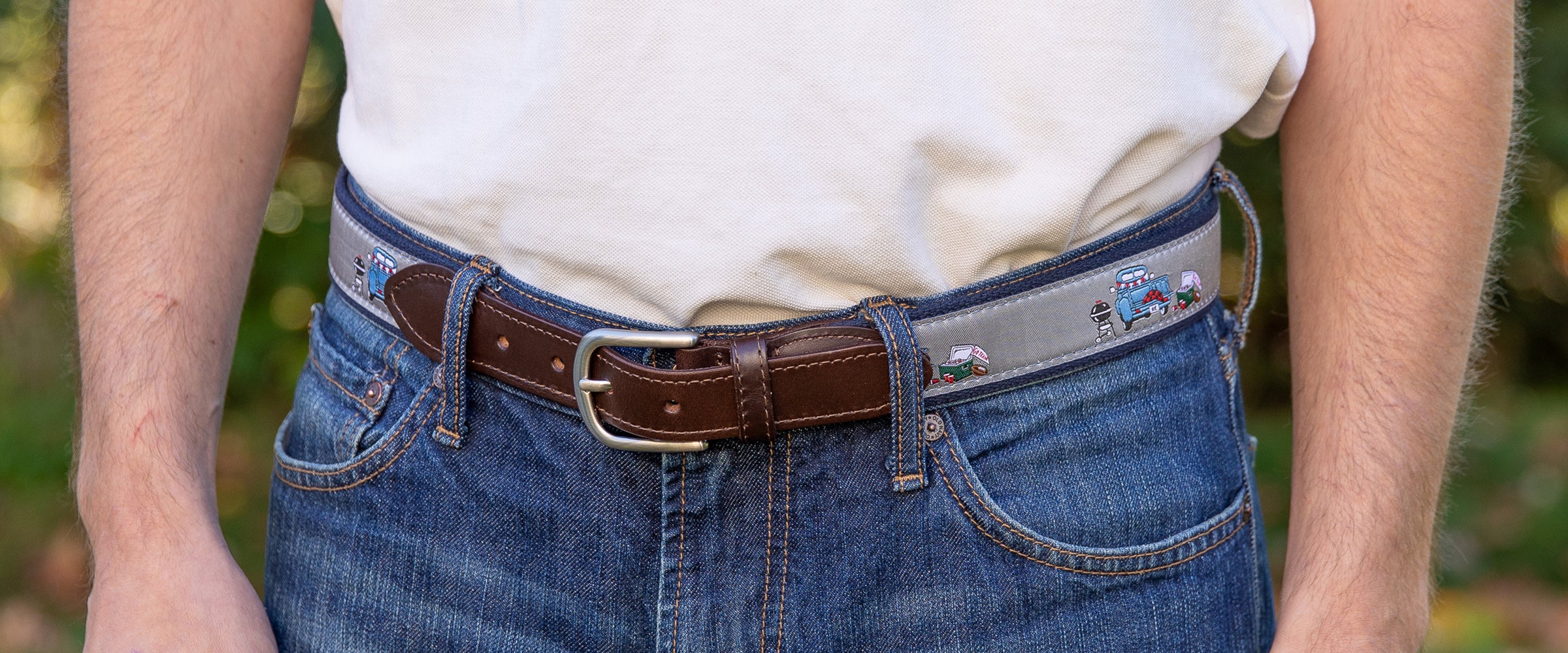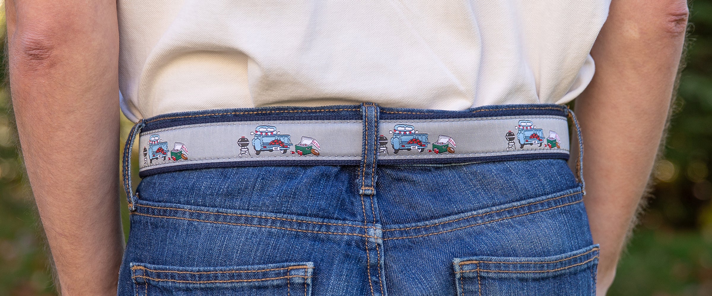 Take your love for game day to cloud nine with this party-ready "Tailgater's Trophy" Belt. Featuring scenes that'll make any superfan drool loaded with trusty trucks (perfect for hauling those "hydration stations"), grills cooking up a storm, coolers packed with game day goodies, and fans who clearly woke up feeling like champions. This belt is basically a wearable tailgate party!