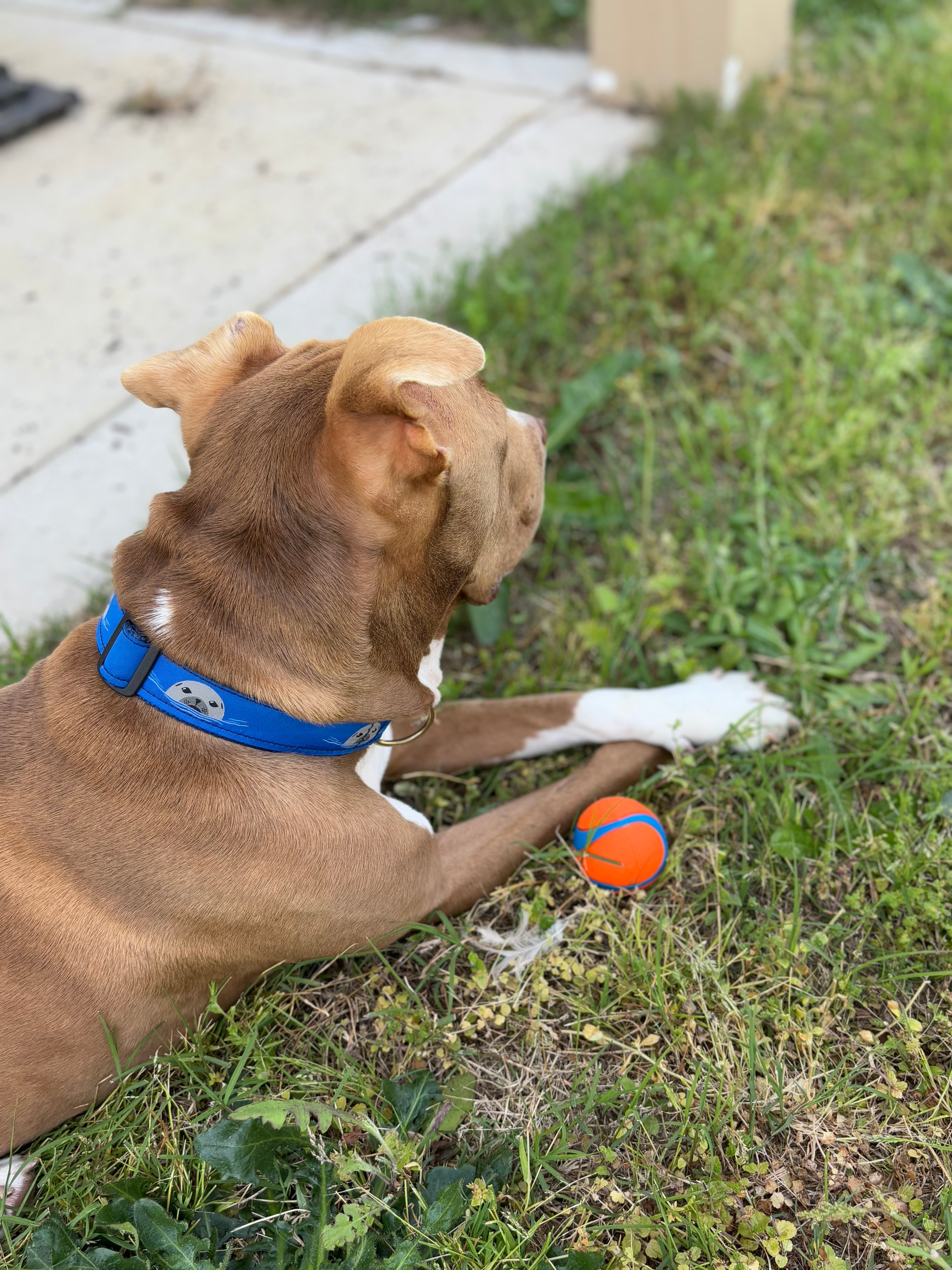 Made for comfort and durability, this snazzy collar is perfect for everyday adventures. The playful harbor seal motif (complete with their "seal of approval") makes it an excellent accessory for beach walks or outings by the sea, ensuring your dog struts their stuff in style wherever they waddle and woof.
