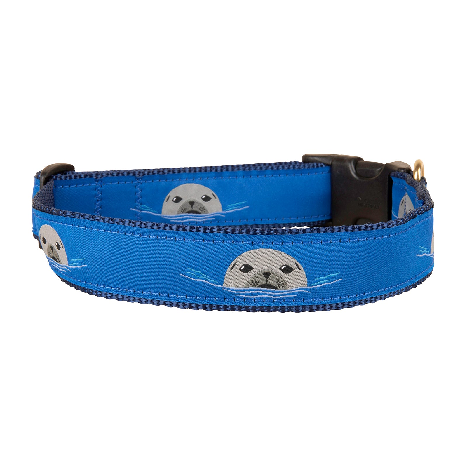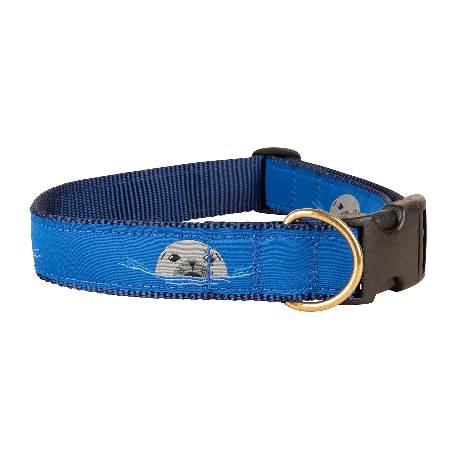 Harbor Seal Ribbon Dog Collar in Blue, 1.25 Inch