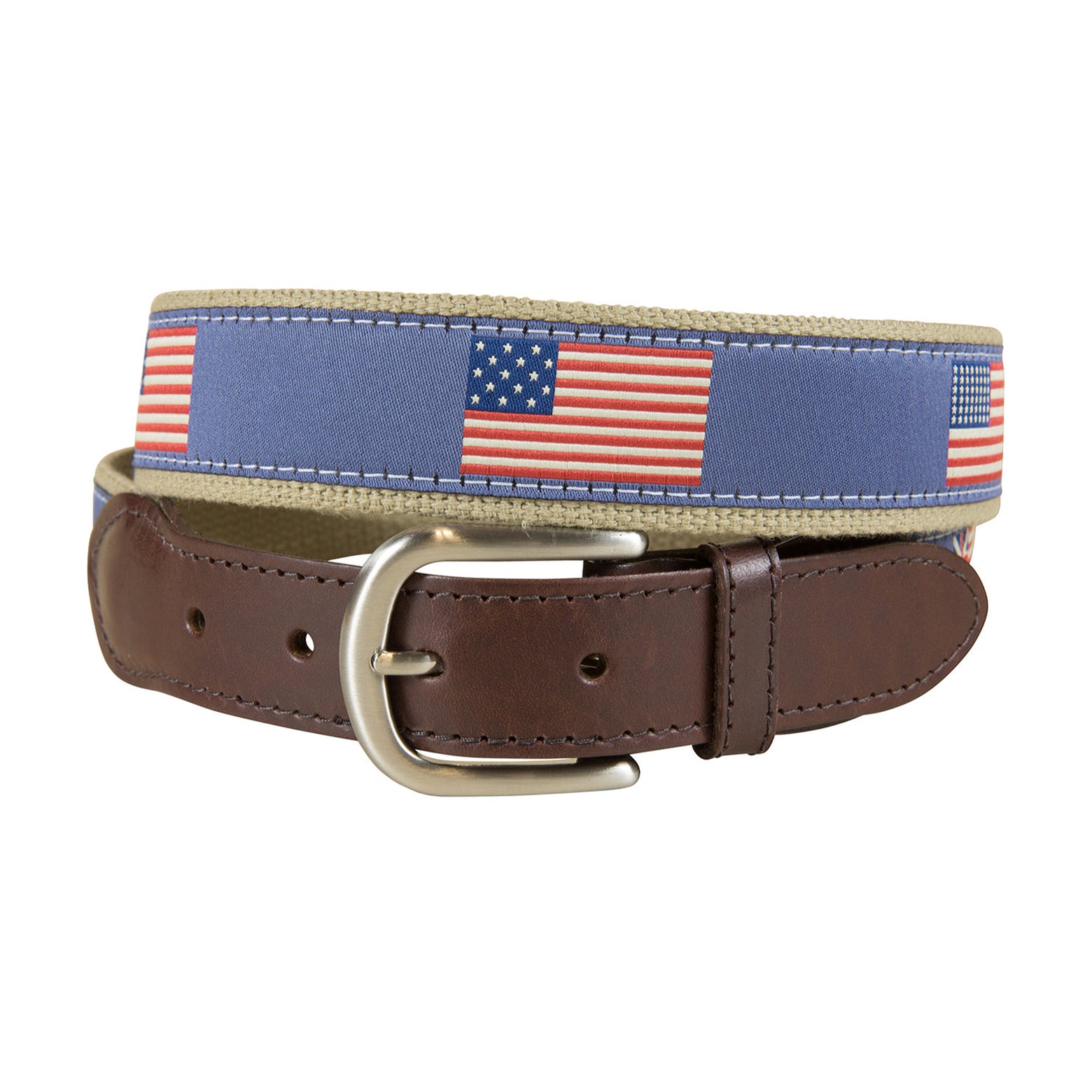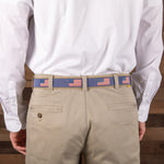 Step into history with the Historical American Flags Club Belt.This design depicts some of the greatest flags to fly over America. From the birth of our nation to the present (Betsy Ross, Grand Union (Continental), Bennington, 13 stars & 13 stripes (1st official, Old Glory), 15 stars & 15 stripes (Star Spangled Banner), 48 stars & 13 stripes and 50 stars & 13 stripes. Whether you're a history buff or just looking for a unique accessory, this club belt brings a patriotic flair to any outfit.