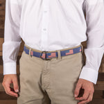 Wave your star-spangled style with this History-Buff's Dream Belt! This conversation starter features a parade of flags that've seen America through thick and thin, from tea-tossing tantrums to moon-landing magic. Each banner is crafted with such attention to detail, you might catch them whispering tales of victory and democracy!