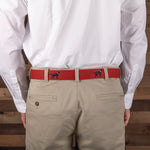 Belted Cow's handmade belts feature whimsical artwork embroidered onto 1 3/8" premium designer webbing belts woven in Belgium. Each of our luxury belts showcase brass buckles with genuine Italian leather tabs. These belts are proudly crafted in Maine and shipped in a Belted Cow Company drawstring gift bag.