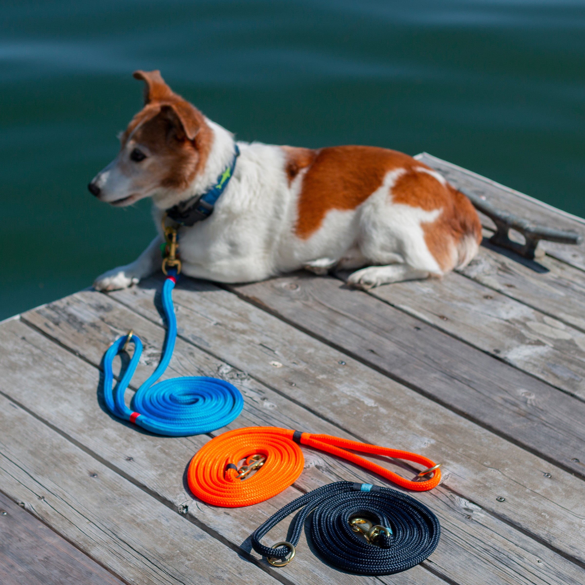 This snazzy Maine Dock Line Dog Leash brings a blend of seafaring strength and "dock-star" style to your pup's daily adventures. The braided rope (tough enough for boats, perfect for barks!) ensures your furry first mate stays shipshape, while the eye-catching trim makes sure everyone knows your pooch is the captain of cool.