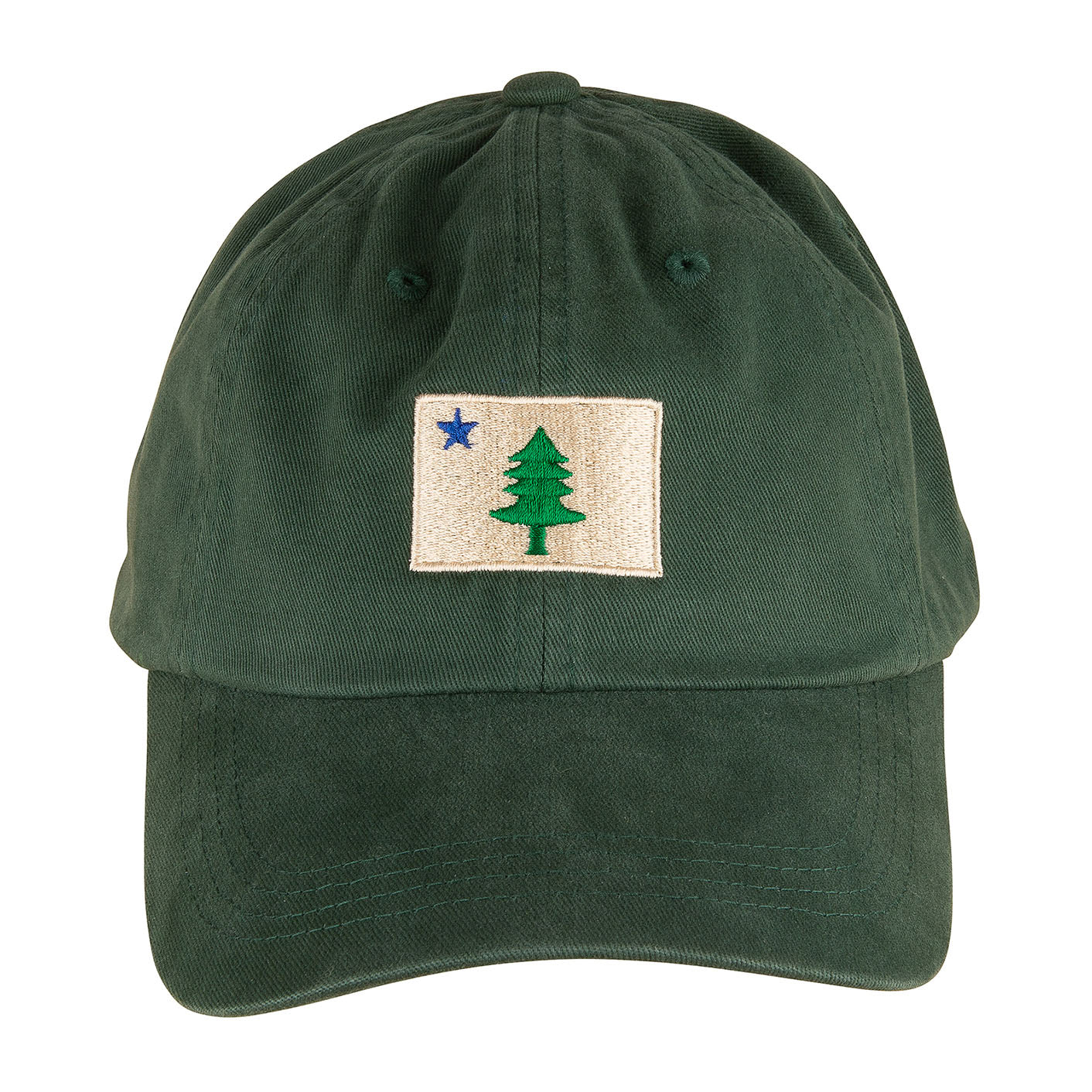 Show your Maine pride with this snazzy hat featuring the Original Maine Flag's majestic pine tree and twinkling star design - because nothing says 'I love vacationland' quite like wearing a forest on your head!