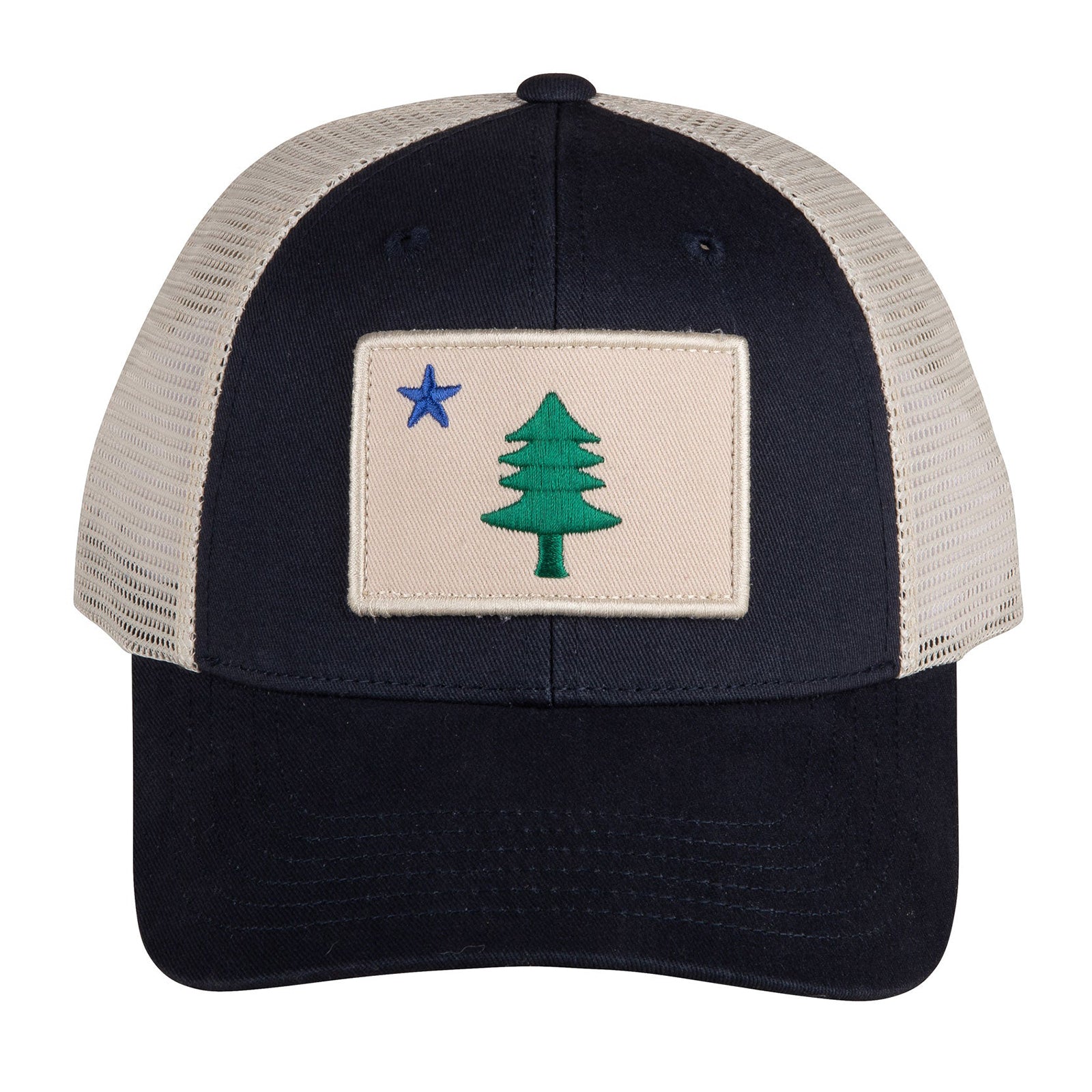 Rock your Maine vibes with this wicked awesome Original Maine Flag patch trucker hat. Featuring a patch of Maine's historic flag design (because who doesn't love a tree reaching for the stars?), this beauty is perfect for forest-dwelling adventurers and proud Mainers alike. The breezy mesh back keeps your noggin happy while you flaunt a slice of Pine Tree State history with effortless cool.