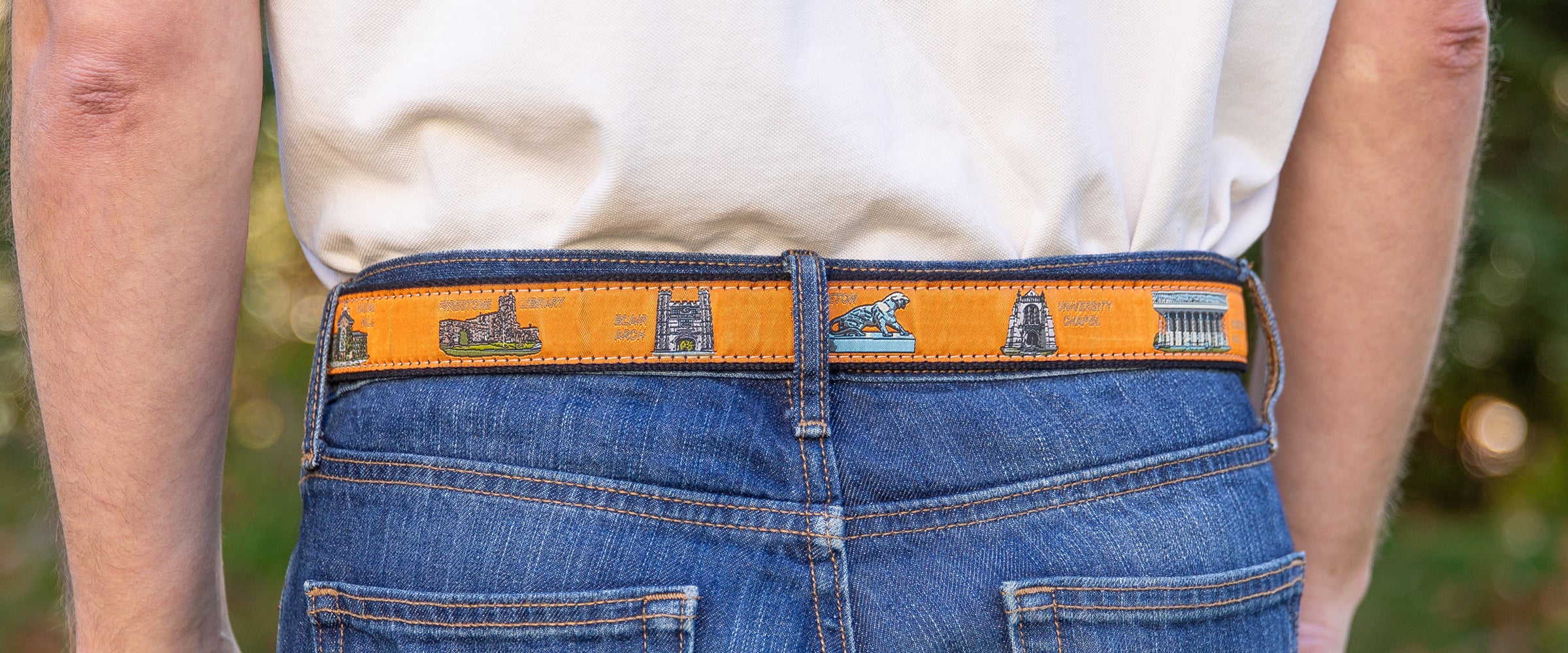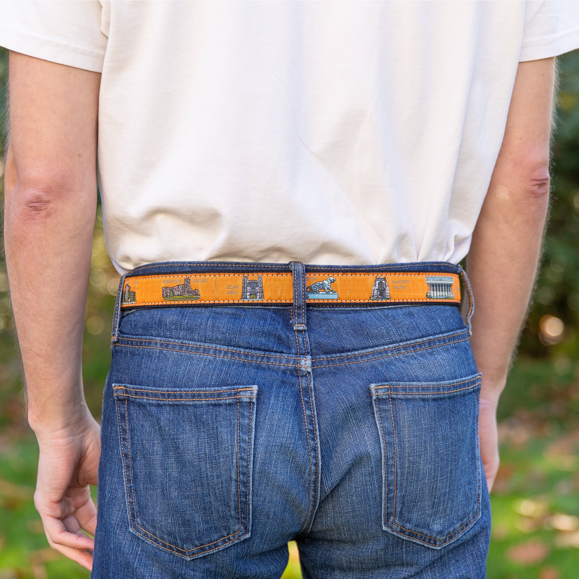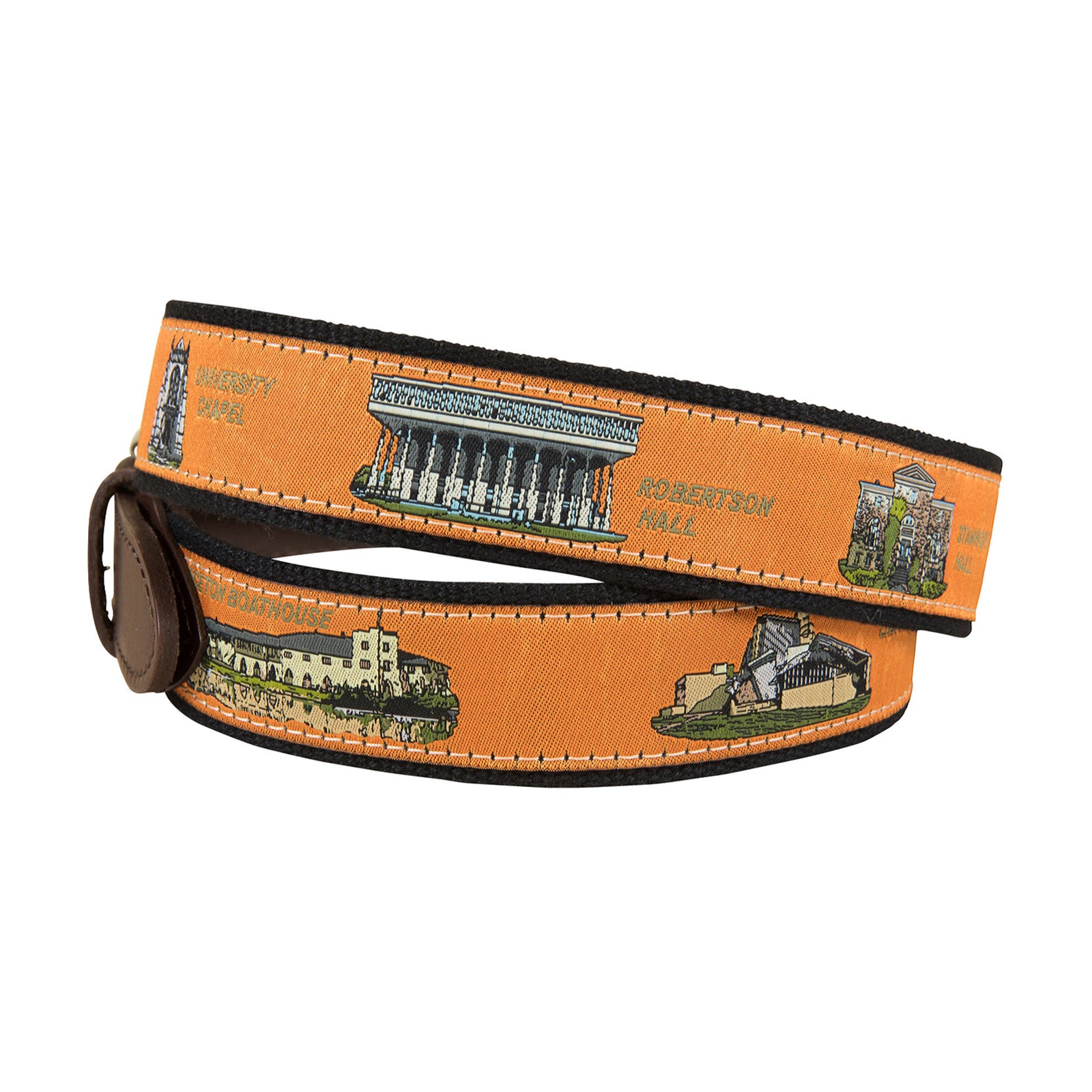 Flaunt your Tiger pride with this delightfully dapper club belt, where meticulously woven campus icons (hello there, Robertson Hall and Princeton Boathouse!) strut their stuff in a parade of architectural eye candy.